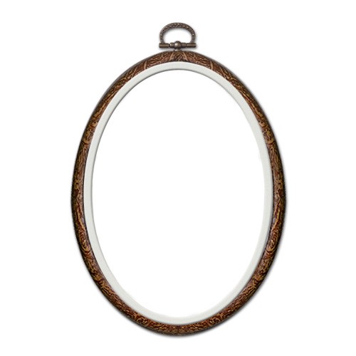 このフレームひとつで、刺しゅう枠にも完成した作品を飾ることもできます。サイズ違いと円形もご用意しています。楕円フレームは縦長にも横長にもなります。