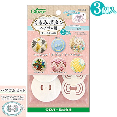 刺しゅう、タティング、ビーズ、羊毛、ファブリック、パッチワーク、ニットなど小さな作品を、ヘアゴム用に簡単に仕立てられる、くるみボタンのセットです。