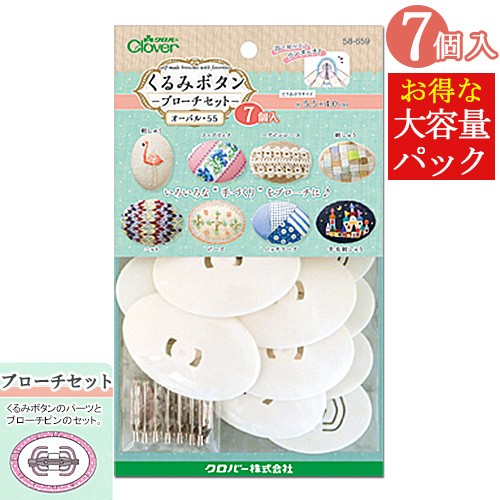 刺繍 用具・用品 ベース くるみボタン ブローチセット オーバル55 7個入り