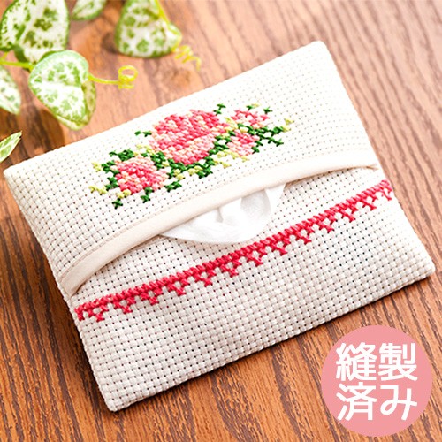 【 セット内容/素材 】 コスモ25番刺しゅう糸(綿100%)、ポケットティッシュケース(綿100%)、刺しゅう針(鋼)、図案付き作り方説明書