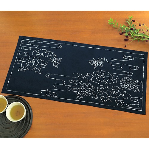 刺し子キット テーブルセンター 牡丹と蝶 | 刺しゅう 刺繍 手芸 ハンドメイド トーカイ