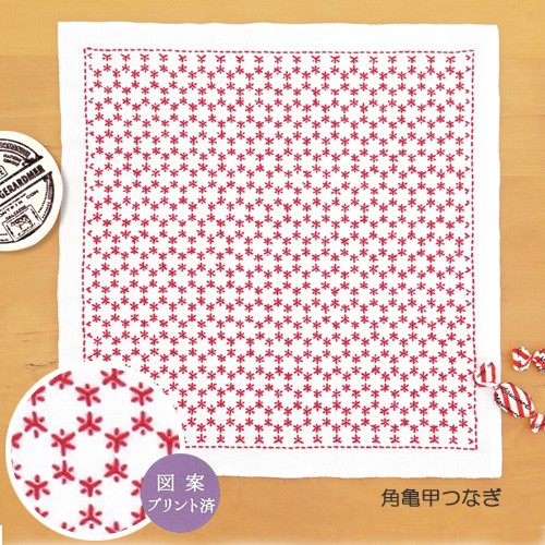 【 セット内容/素材 】 晒木綿 白(綿100%)、刺し子糸(15)赤、刺し子針、作り方説明書(カラー)