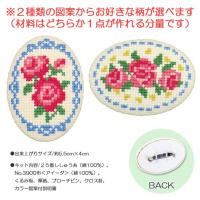 【 セット内容/素材 】 25番刺しゅう糸(綿100%)、No.3900布アイーダ(綿100%)、くるみ板、厚紙、ブローチピン、クロス針、カラー図案付説明書