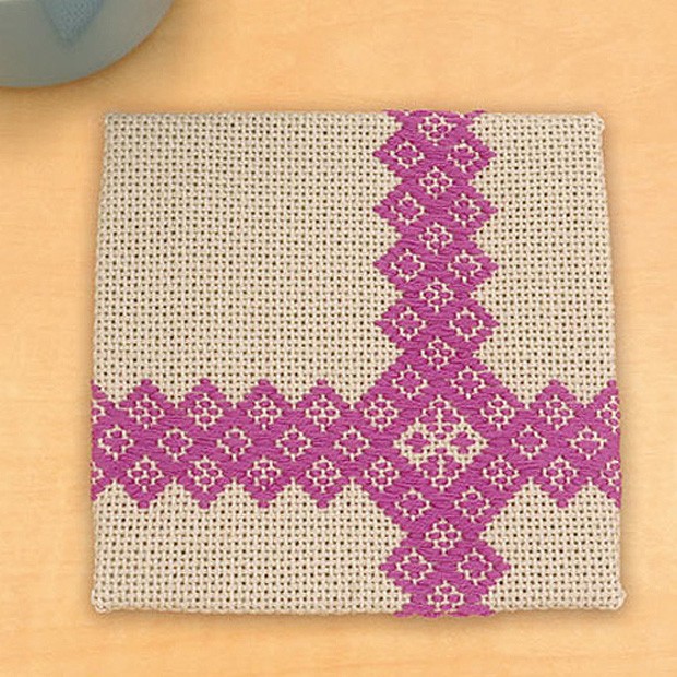北欧テイストのカラフルで可愛いこぎん刺しのコースターです。