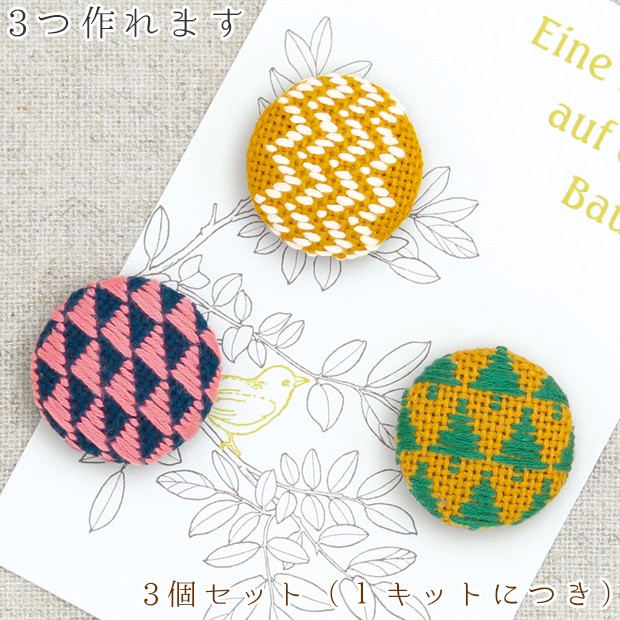 北欧テイストあふれるこぎん刺しのくるみボタンキットです。