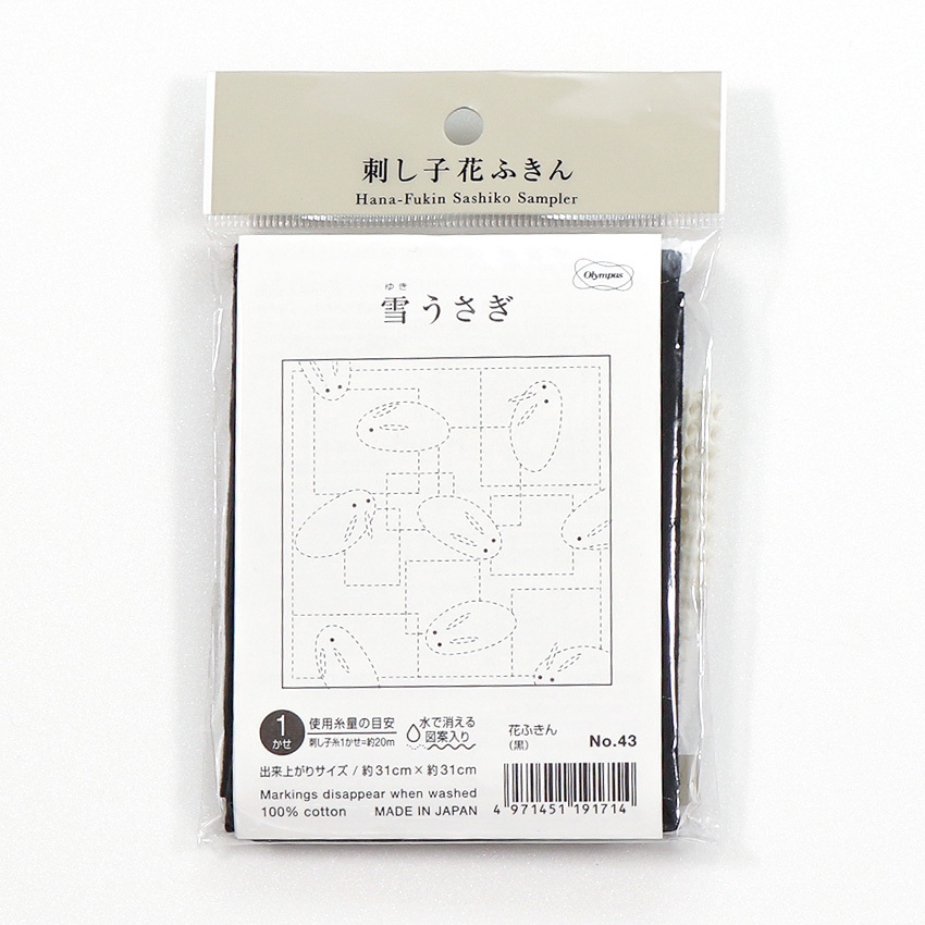 刺し子 花ふきん布パック 雪うさぎ(黒)