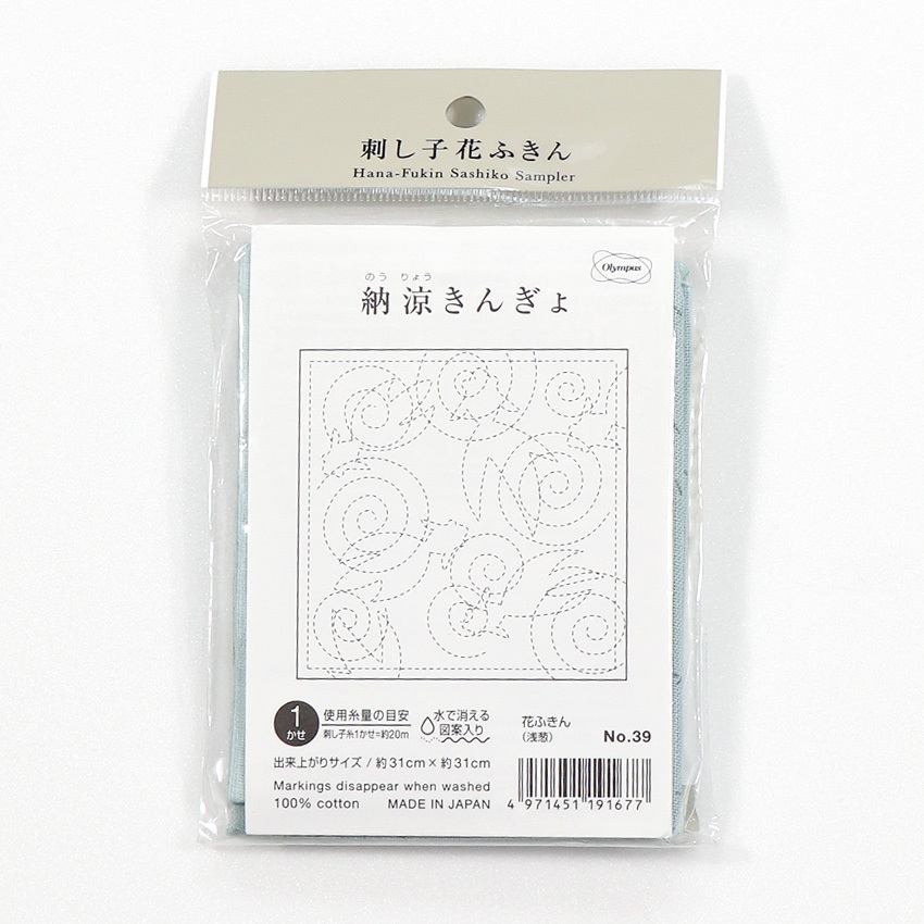 刺し子 花ふきん布パック 納涼きんぎょ(浅葱)