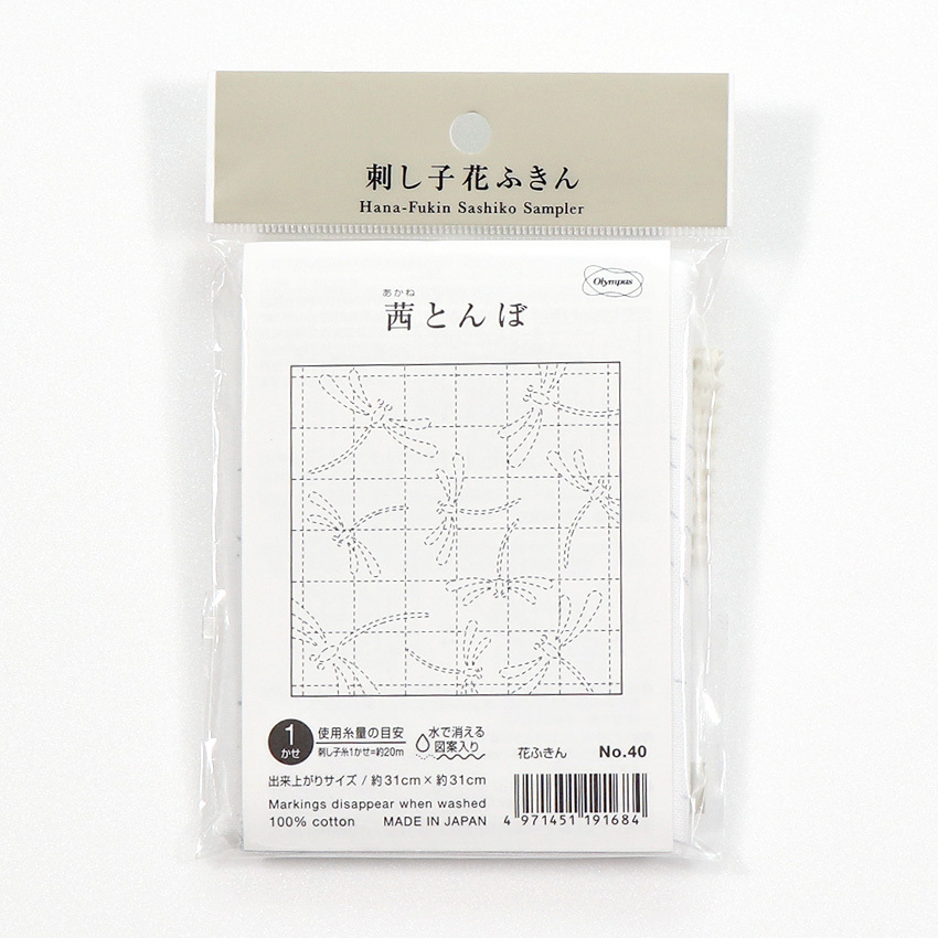 刺し子 花ふきん布パック 茜とんぼ(白)