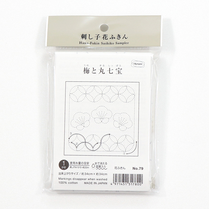 刺し子 花ふきん布パック 梅と丸七宝(白)