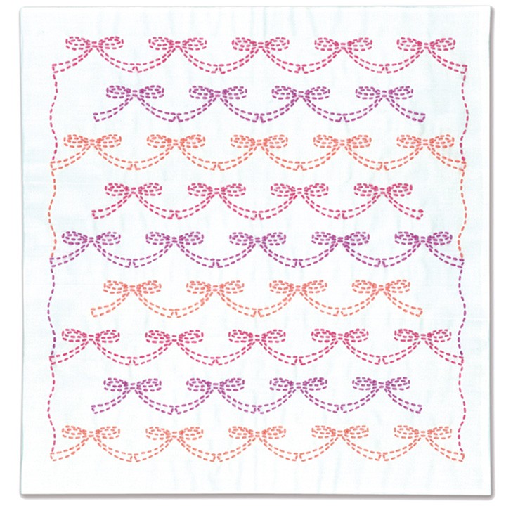 刺し子 花ふきんキット リボン|刺し子 刺し子キット 花ふきんキット 水で消える図案