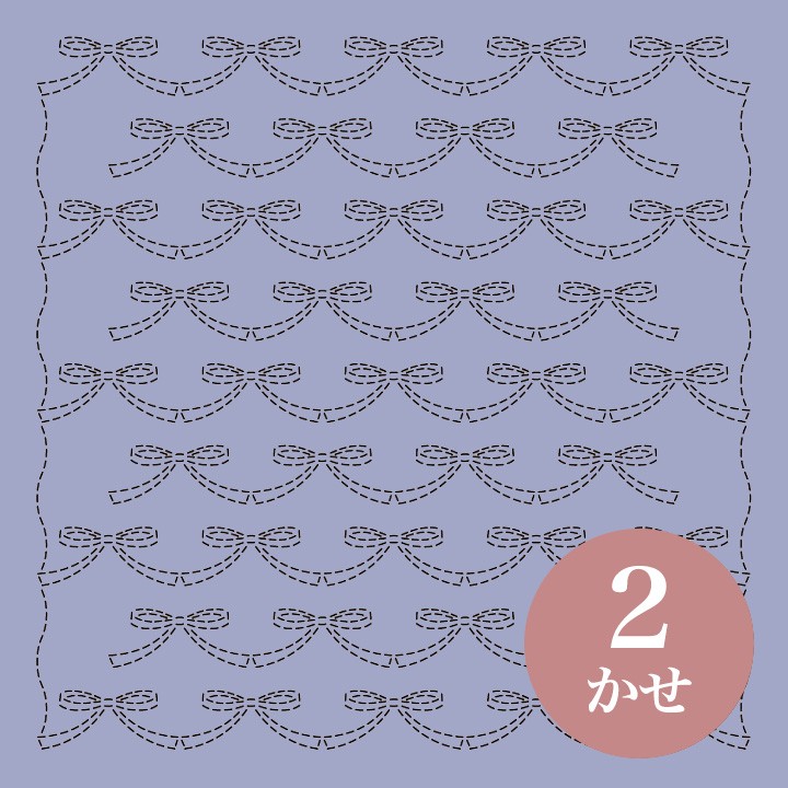 刺し子 花ふきん布パック リボン(ラベンダー)|刺し子布 カラー花ふきん 水で消える図案