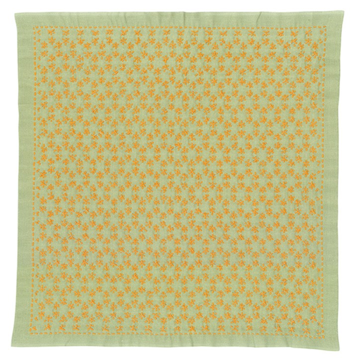 一目刺しの花ふきんキット 角亀甲つなぎ(うぐいす)|刺し子 刺し子キット 一目刺しキット 花ふきんキット 水で消える図案