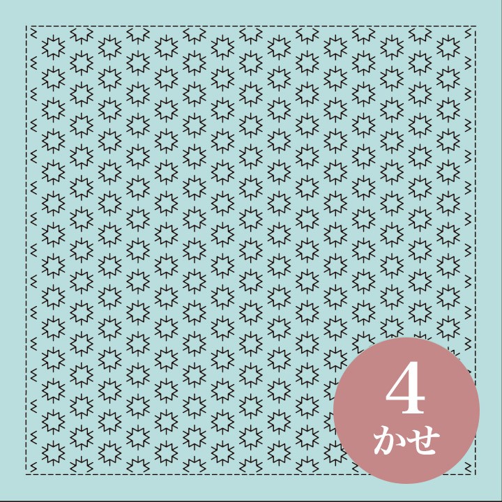 一目刺しの花ふきん布パック こんぺいとう(浅葱)|刺し子布 一目刺し 花ふきん 水で消える図案