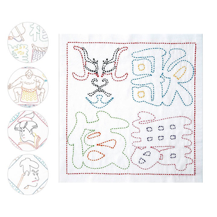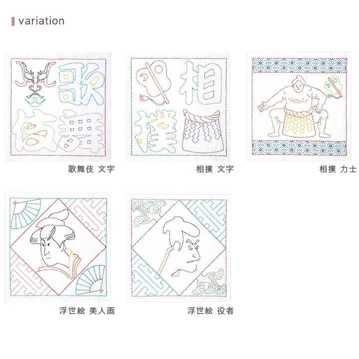 刺し子キット 日本文化柄 花ふきん|5種類 オリムパス 歌舞伎 相撲 浮世絵 日本製