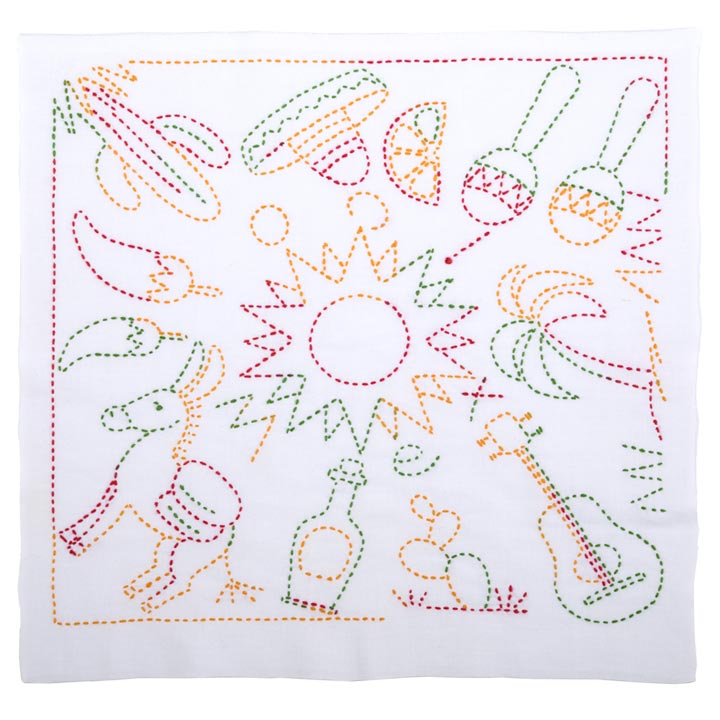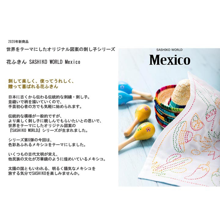 刺繍 刺し子キット 花ふきん SASHIKO WORLD Mxico アミーゴ|刺し子 花ふきんキット ロバ マラカス メキシコ KSW-022