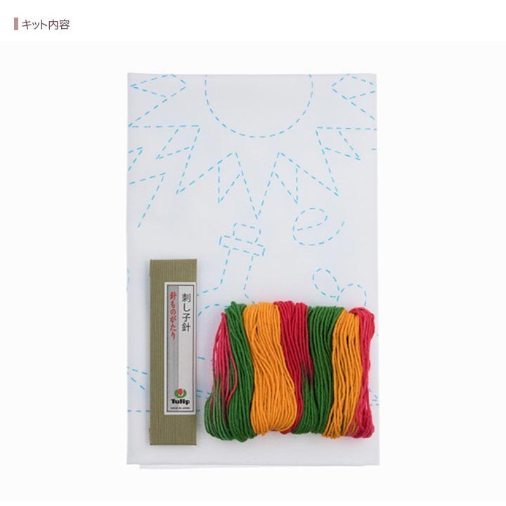 【 セット内容 】 刺し子針(針ものがたり)、刺し子糸(段染め201番/18本)、晒木綿(白/図案印刷済)、説明書