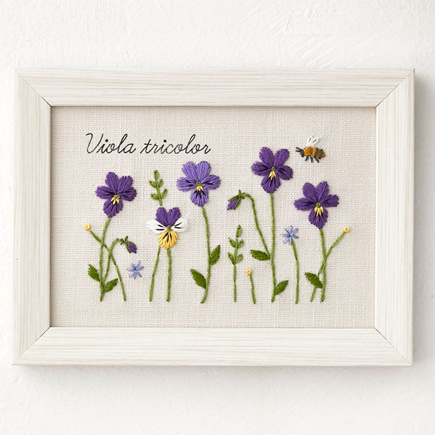 刺繍 青木和子 12か月の植物手帖 ビオラ フレーム付き|No.542010 コスモ 刺しゅうキット COSMO フランス刺しゅう