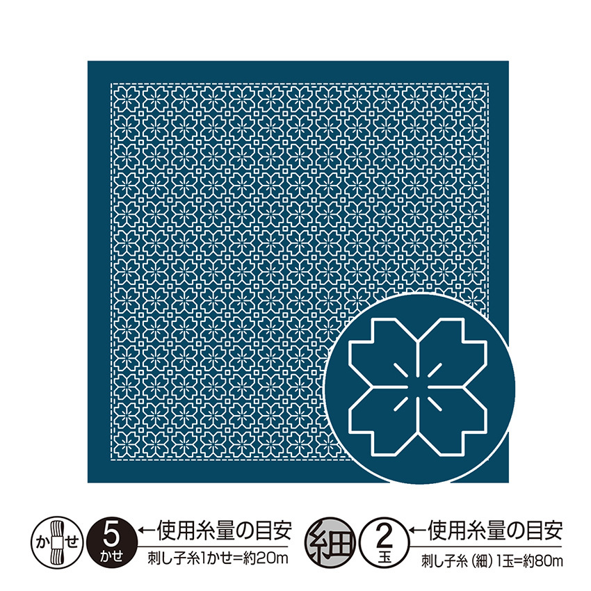 オリムパス 一目刺しの花ふきん布パック 桜の花 (藍) 印刷済布 H-2033 | 刺し子布 藍布 紺 さくらの花 さくら柄 桜 セット さしこ