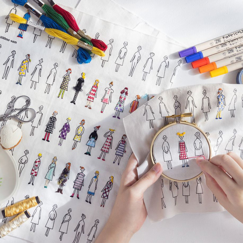 お気に入りのネエサンを見つけて、刺しゅう糸や布ペンなどで色付けしながらスタイリングすれば、オリジナル作品が作れます。