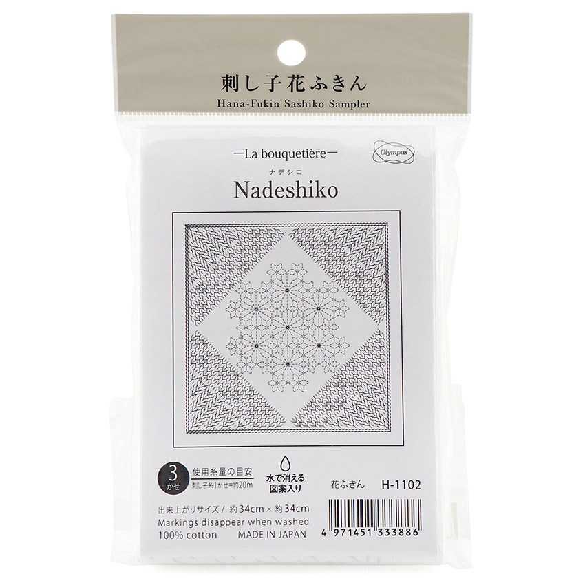 オリムパス 刺し子布パック 花ふきん La Bouquetiere ナデシコ H-1102 (白) | 刺し子の花ふきん 布 なでしこ Nadeshiko さしこ ふきん布
