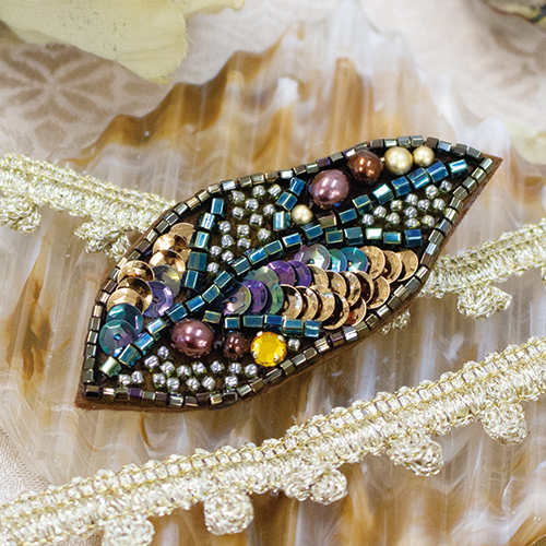 ビーズ・デコ刺しゅうをはじめよう リーフブローチ ヴィーノ TOHO H-BDT-1 | トーホー ビーズ刺繍 基本 刺しゅう ブローチ 手芸キット