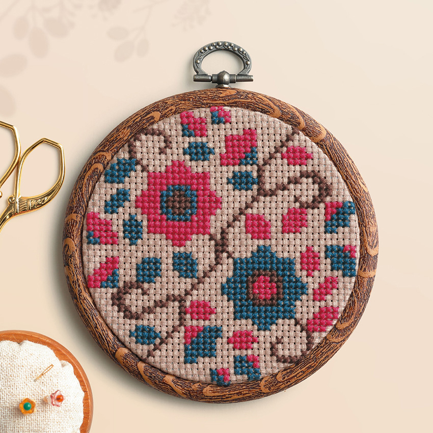 ■セット内容…25番刺しゅう糸、クロス針、NO.5500(ジャバクロス細目)〈11〉ローズブラウン、カラー図案付説明書、おしゃれフープP-112木目