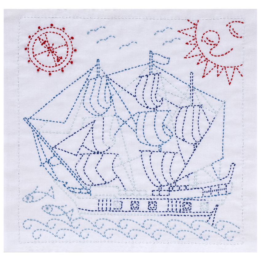 刺繍 キット チューリップ 刺し子 花ふきん SASHIKO WORLD Spain ガレオン船 KSW-035 | 刺繍 キット チューリップ 刺し子 花ふきん 世界 tulip