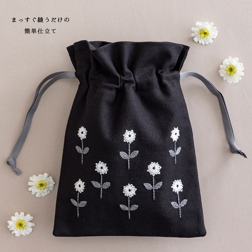 戸塚刺しゅう × 星燈社 フリーステッチキット 刺繍キット 星あかりの刺繍手帖 巾着袋 さざめき 559 図案プリント済 | 戸塚刺繍 フランス刺しゅう