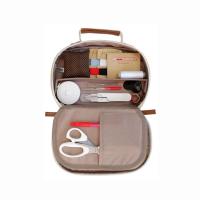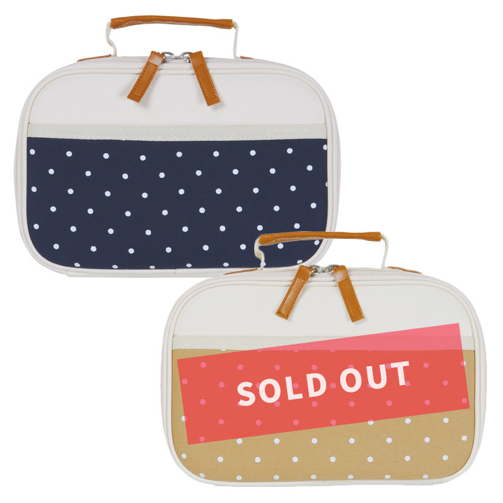 ナチュラルテイストのバッグがかわいい、水玉柄のこぶりな裁縫道具セット。
