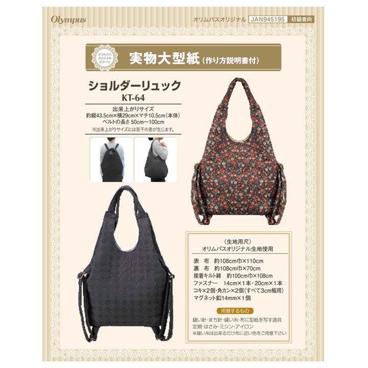 【 出来上がりサイズ(約) 】 本体…縦43.5cm×横29cm×マチ10.5cm、ベルトの長さ…50〜100cm