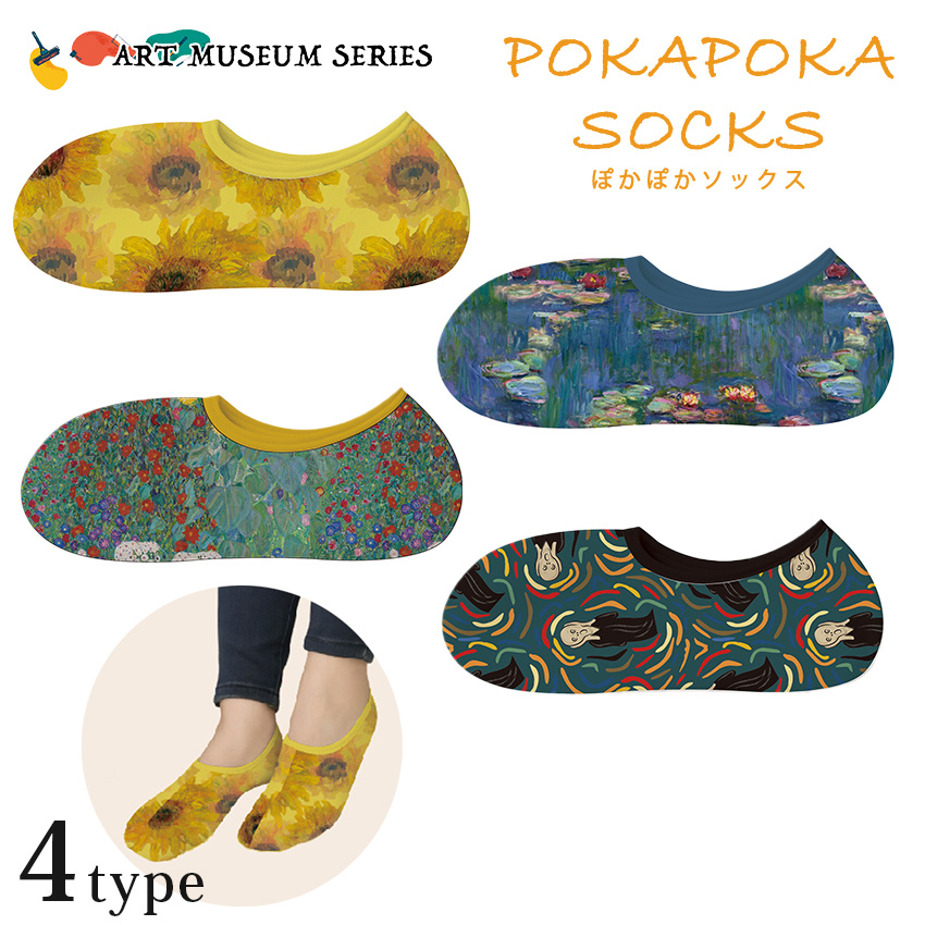 ぽかぽかアートミュージアム ショート ゴッホ モネ クリムト ムンク 完成品 | 靴下 レディース ソックス 冷え取り 冷え取り靴下 冷え対策 日本製 二重履き