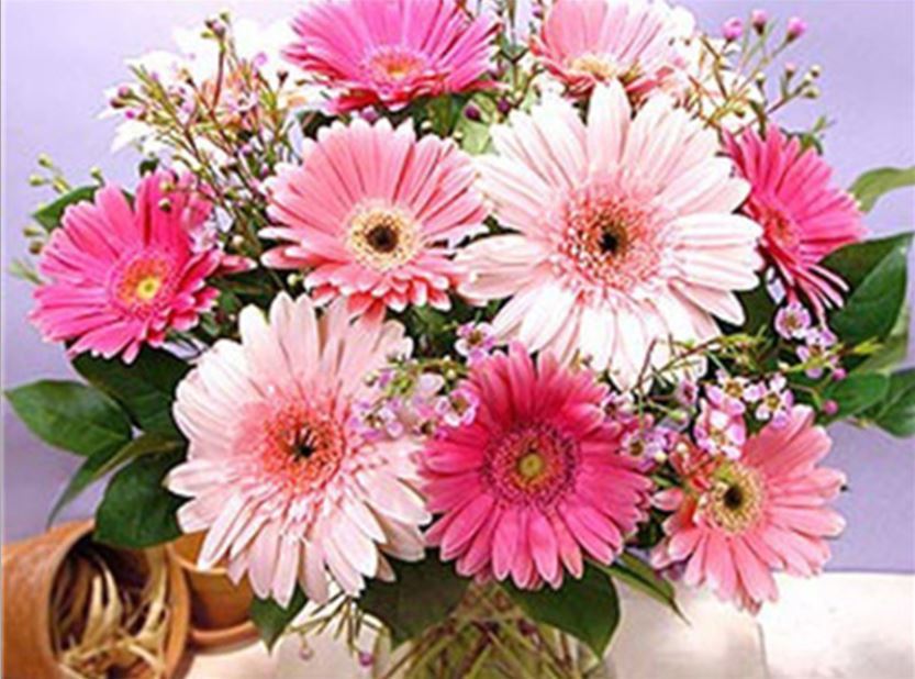 ダイヤモンドアート キット ガーベラ ピンク ブーケ 四角ビーズ 丸ビーズ かわいい花 ダイアモンドアート ペインティング セット 送料無料