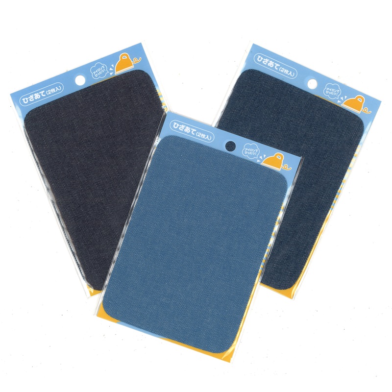 デニムひざあて 2枚入 アイロン接着 ひじあて 濃紺 紺 ライトブルー ネイビー 綿100% 補修 補強