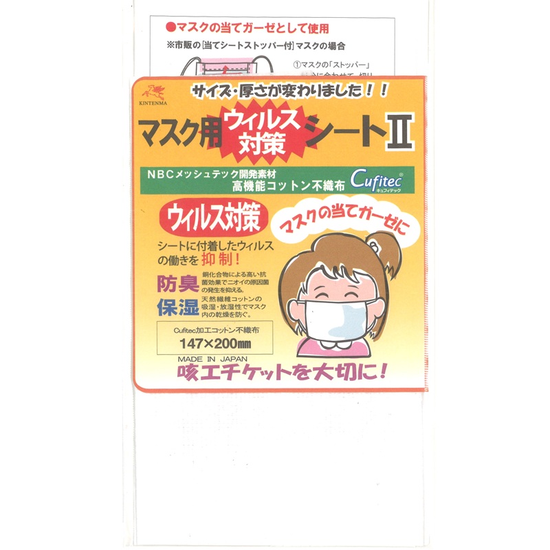 マスク用 ウイルス対策 防臭 保湿 コットンシートII 金天馬 川村製紐