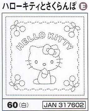 刺し子 リハビリ(作業療法)花ふきん布パック (ハローキティとさくらんぼ)