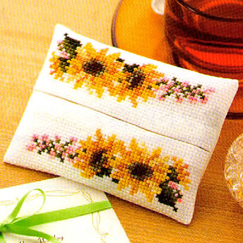 刺繍キット(クロスステッチ) ティッシュケース ヒマワリ