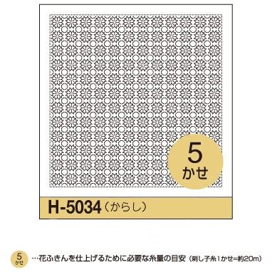 必要な糸量の目安:5かせ(刺し子糸1かせ=約20m)