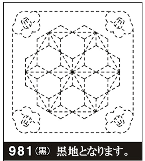 刺し子 リハビリ(作業療法)花ふきん布パック 椿と飛び麻の葉(黒)’ オリムパス