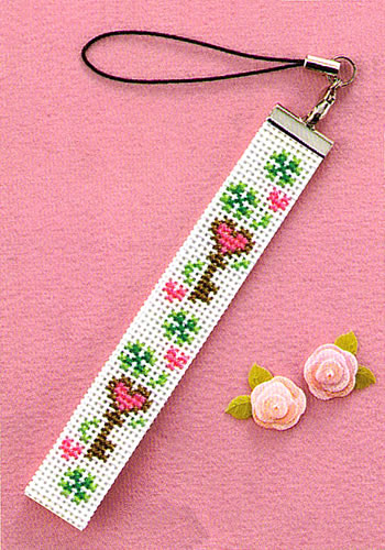 キット内容:25番ししゅう糸・ビニールキャンパス・ストラップ・ひも止め金具・クロス針・図案付説明書