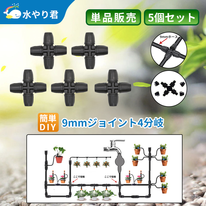 9mmジョイント 4分岐 5個セット 自動水やり器用 B015