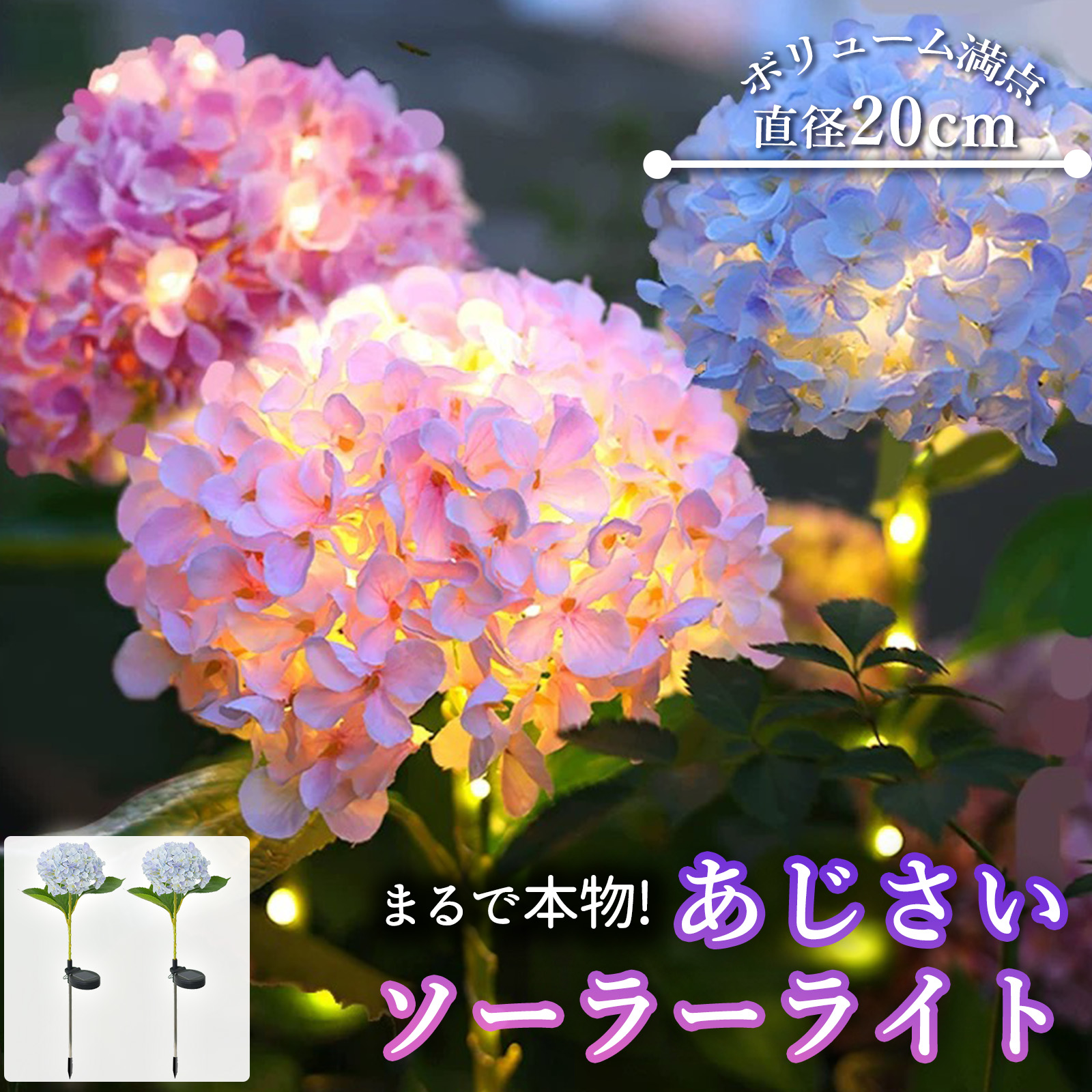 【まるで本物!あじさいソーラーライト】