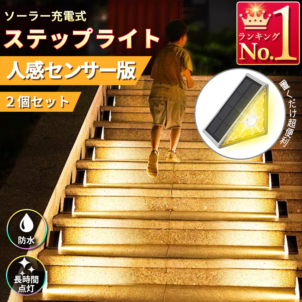 ソーラーライト 三角形 2個セット 人感センサー付き 階段ライト ガーデンライト 屋外 自動点灯 デッキライト 防水 LED ソーラーランプ 門灯 通路 A121