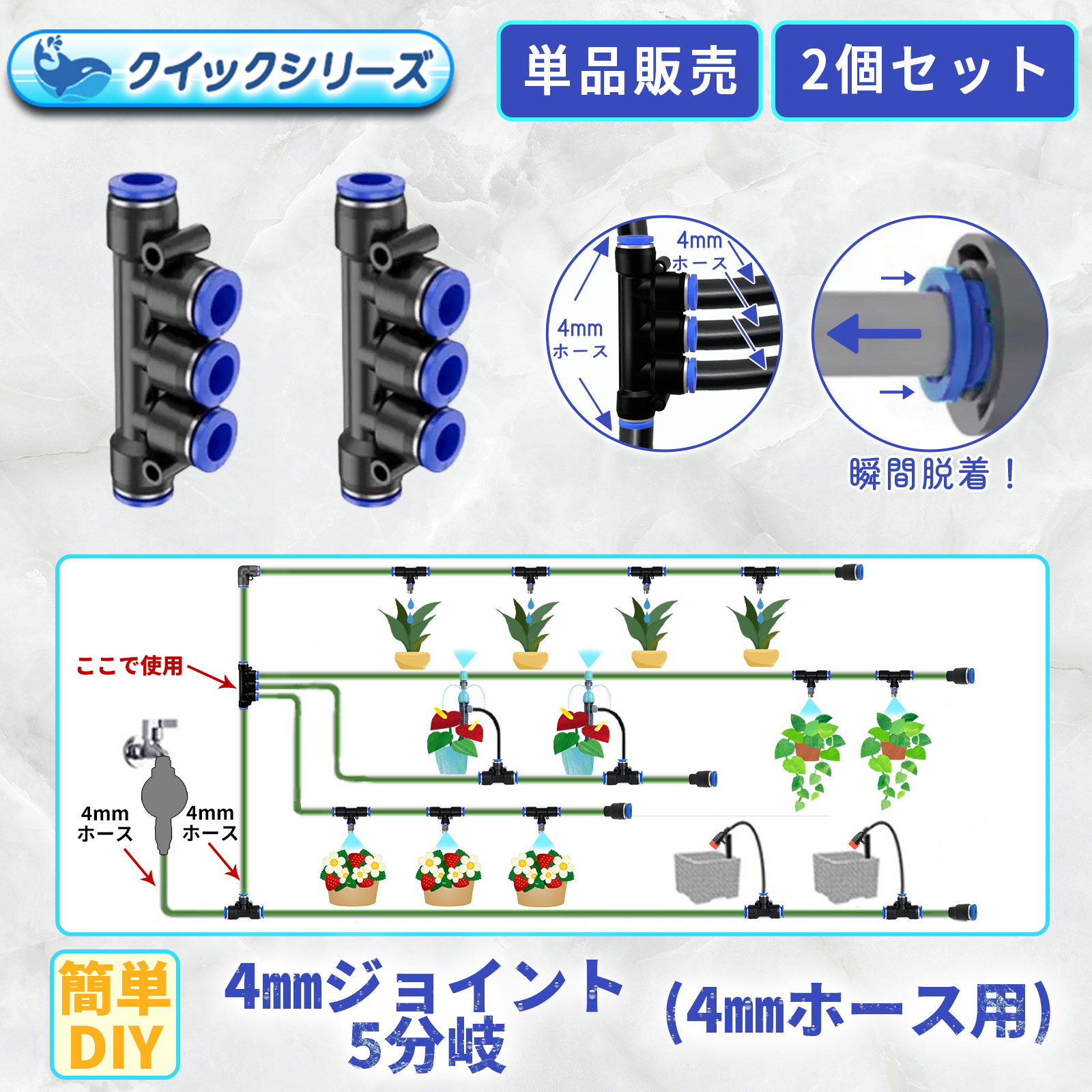 4mmジョイント5分岐 クイック式 4mmホース用 2個セット 自動水やり器用 B079