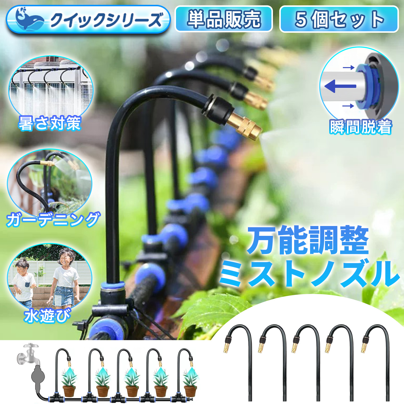 万能調整ミストノズル 5個セット クイック接続 簡単取付 360度方向調整 角度調整 ガーデニング 暑さ対策 庭 水遊び 菜園 散水用 B085