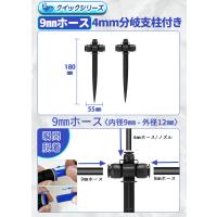 ●地中に差し込める支柱付きのため、固定した状態で内径9mmホースから内径4mmホースへ分岐が可能です。