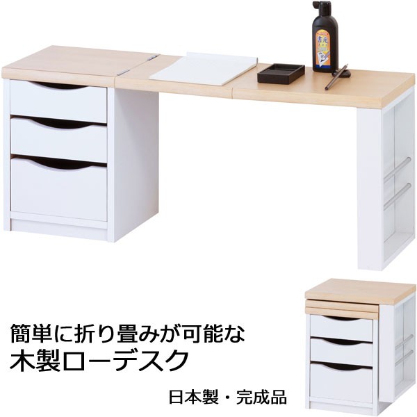 ローデスク 文机 折りたたみ 引き出し マガジンラック 収納 コンパクト ナチュラル ホワイト 木製 日本製 完成品