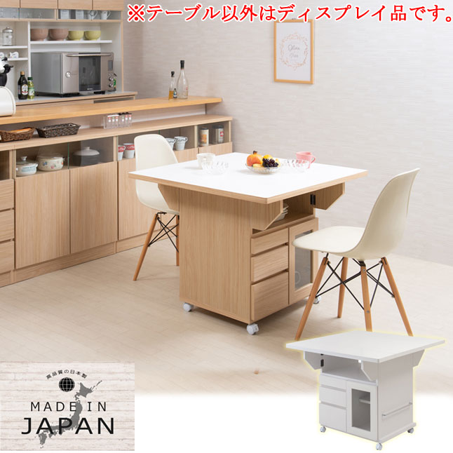 バタフライテーブル キャスター付き 収納付き 幅89.5cm 天板折り畳み式 木製 日本製 完成品 キッチンカウンター キッチンワゴン カウンター収納