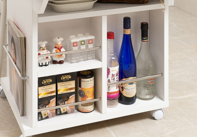天板下のオープン収納部は両面から取り出すことができますので、よく使用する食器類などを収納しておくと便利です。