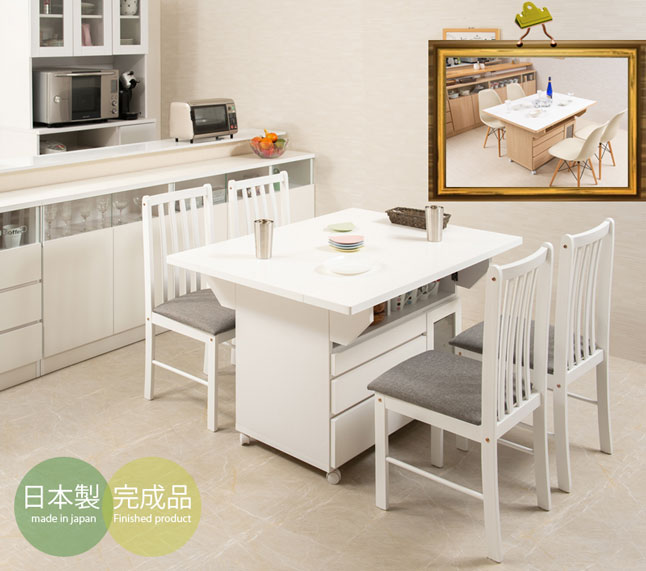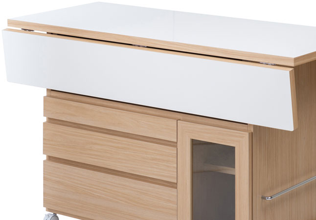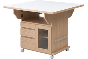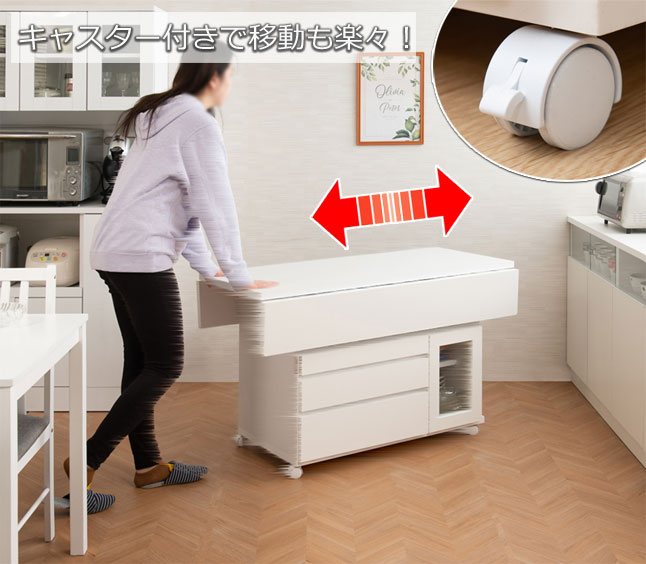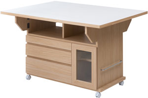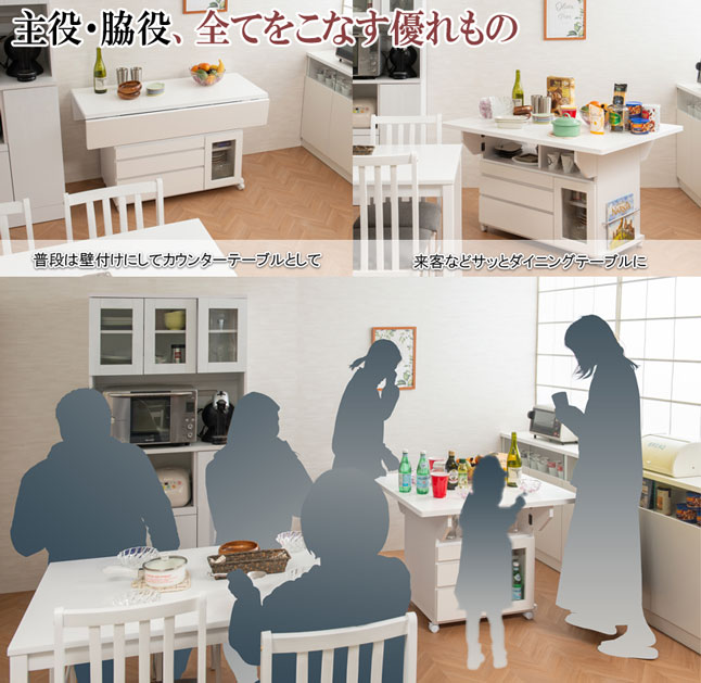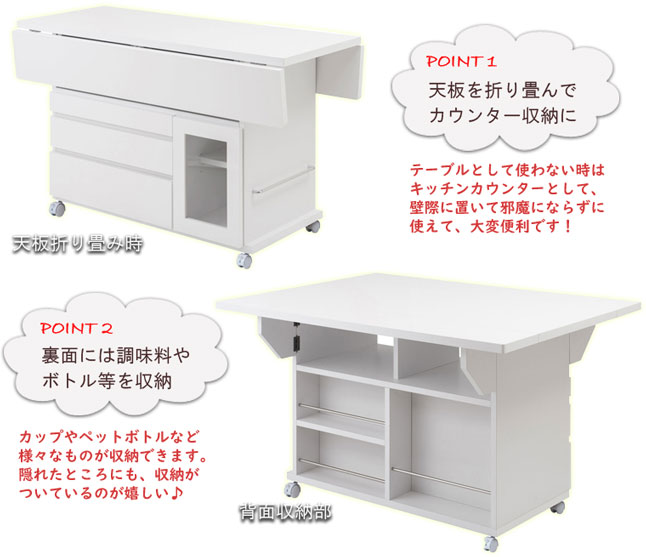 天板は両サイドを折り畳むことができますので、テーブルとして使用しない時は折り畳んでキッチンカウンターとしてもご使用いただけます。