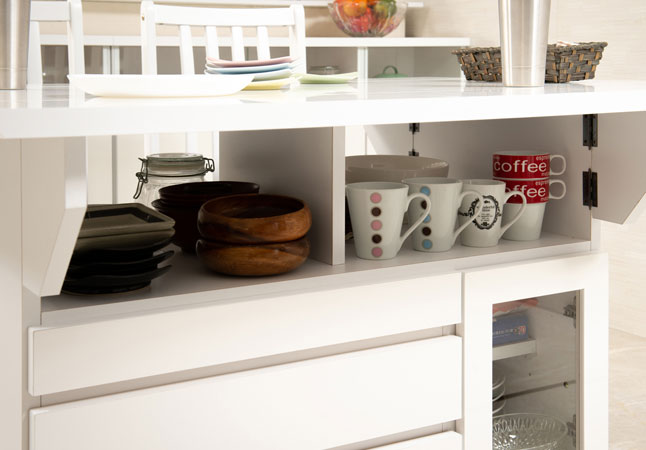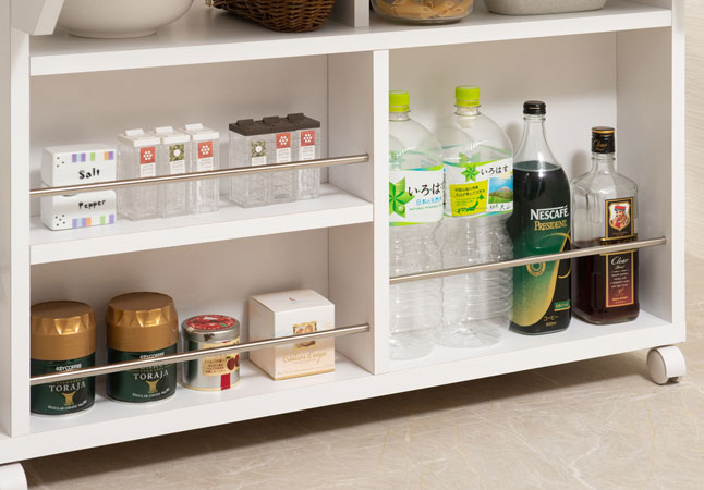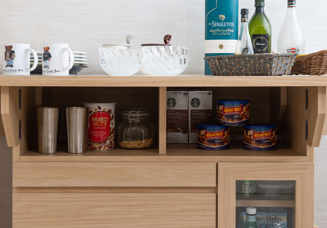 天板下のオープン収納部は両面から取り出すことができますので、よく使用する食器類などを収納しておくと便利です。